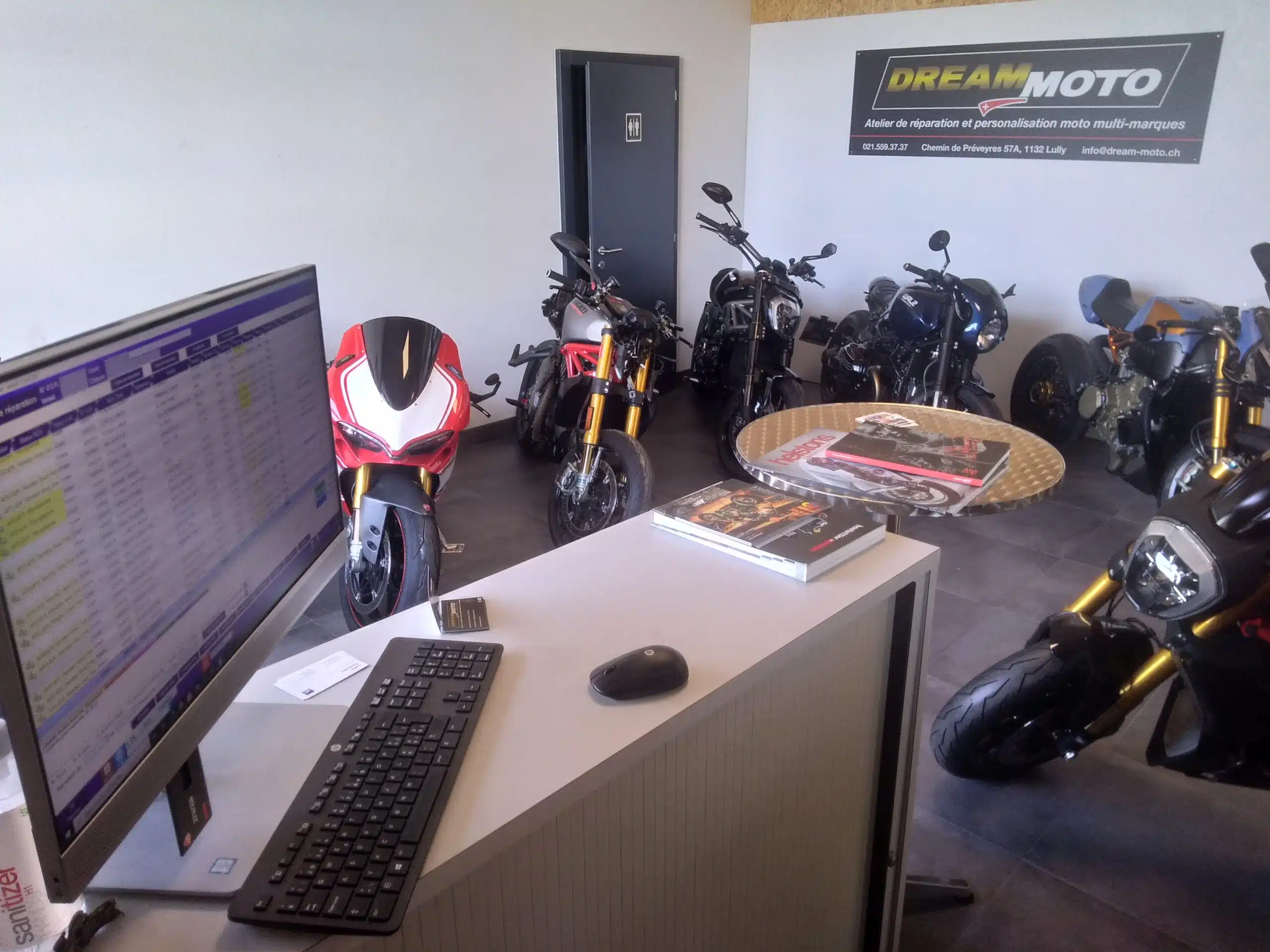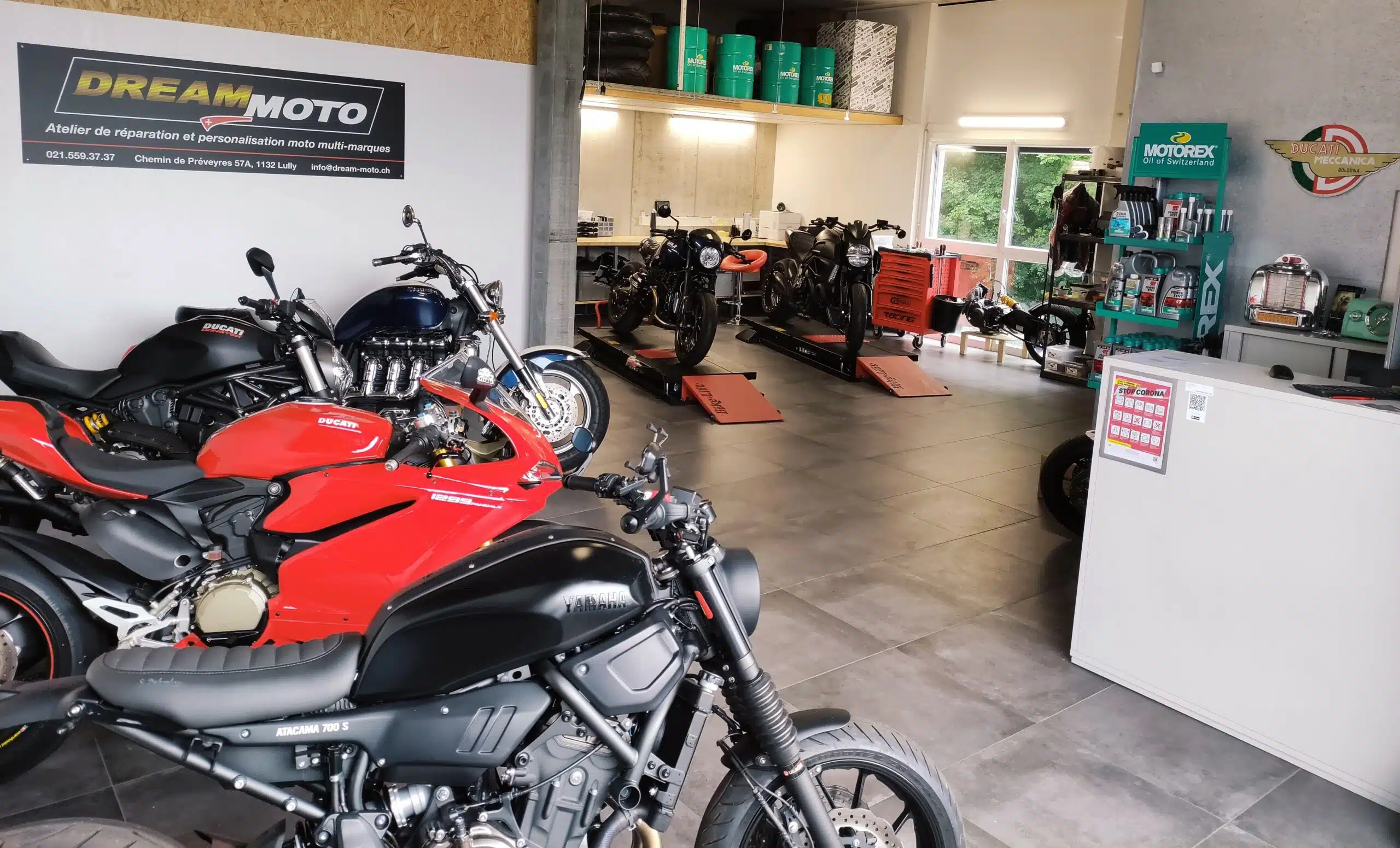 Garage moto canton de Vaud en Suisse, près de Lausanne et Morges (Lully)