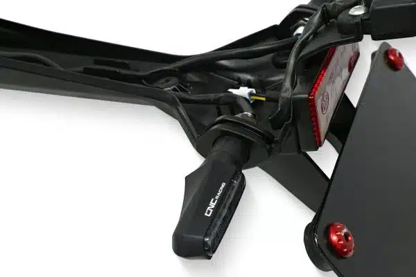 Adaptateurs montage clignotants CNC Racing, une paire pour l’arrière de la moto sur le support de plaque d’origine