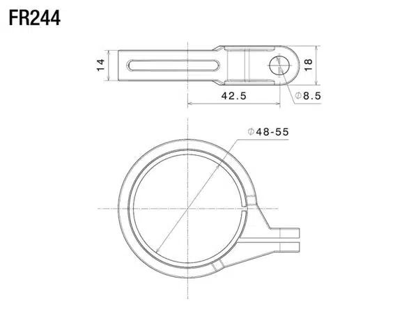 Le kit inclut 2 attaches avec des diamètres de 48 à 55 mm pour pouvoir monter sur différentes motos selon le diamètre des fourreaux de fourches.
