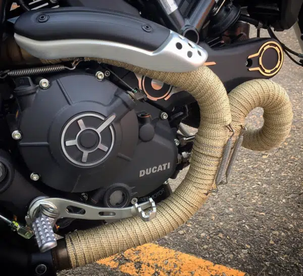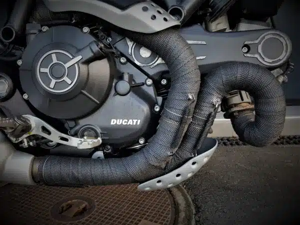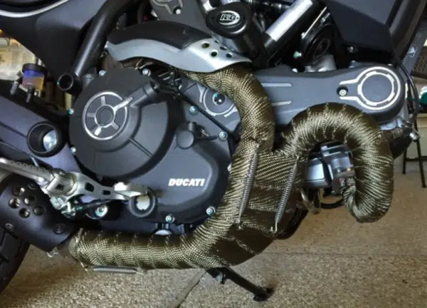 Note : DEI déconseille l’application de leur produit sur les échappements en Titan. Nous vous mettons également en garde sur le fait que les straps altèrent le metal des échappement à long terme et en particulier lors d’utilisation répetées sous la pluie.