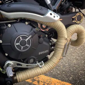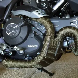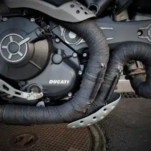 Note : DEI déconseille l’application de leur produit sur les échappements en Titan. Nous vous mettons également en garde sur le fait que les straps altèrent le metal des échappement à long terme et en particulier lors d’utilisation répetées sous la pluie.