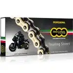 Chaine REGINA ZRP couleur OR avec pas de 525 et longueur d’origine de 118 maillons, livrée avec son attache à riveter.