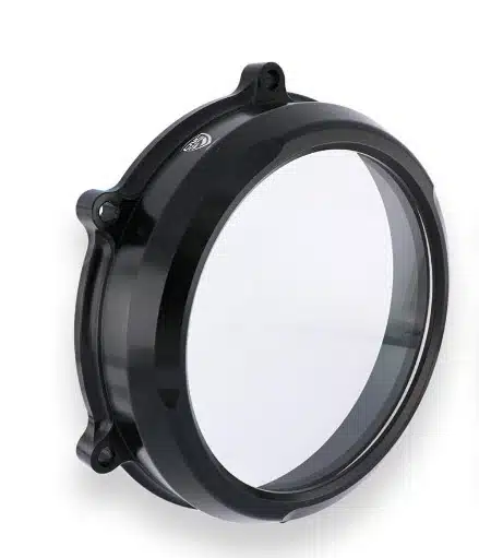 Muni d’une plaque en Lexan transparente ce couvercle vous permettra de voir fonctionner le mécanisme d’embrayage de votre moto en marche