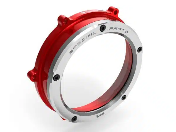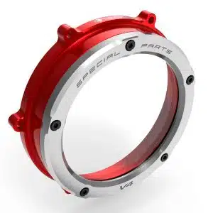 Carter d’embrayage vitré Noir/Rouge, disponible dans de multiples couleurs. Sauf pour la Panigale V4, à associer imperativement avec le carter d’embrayage complet Ducabike aluminium ou le Ducati en magnesium.