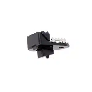 Lors de virées en tout terrain, on passe souvent de la position assise à la position debout. Lorsqu’on est debout, l’angle du genou change, réduisant la pression du pied sur la petite pédale. La surélévation de la surface de contact modifie l’angle du pied, ce qui permet d’atteindre et de contrôler facilement le levier de frein même en position debout. Deux niveaux de surélévation sont possibles.