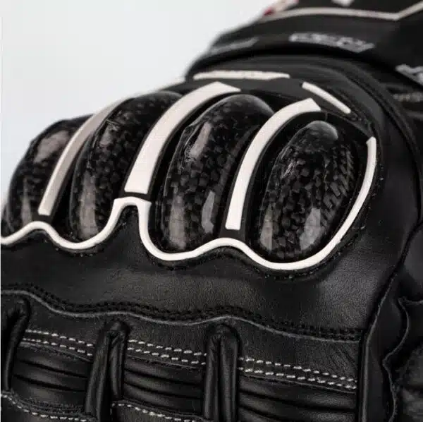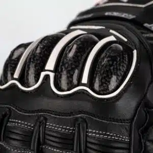 Fabriqué en cuir de vachette pleine fleur et en cuir de kangourou, le gant est doté de protège-phalanges CE Niveau 2 en carbone pour la protection contre les chocs. Des fibres DuPont™ Kevlar sur les coutures et la sous-couche de la paume, ainsi qu’une double couche de cuir de kangourou et un slider de paume RST protègent la paume en cas de glissade à grande vitesse, tandis que la double fermeture de poignet et manchette offre un ajustement sûr. La doublure en DuPont™ Kevlar® sur tout le reste du gant permet d’éviter les déchirures, et le maintien auriculaire empêche le retournement des doigts sans affecter la préhension ou la souplesse lors du changement de vitesse.