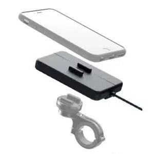 Le Charging Module est un chargeur inductif qui te permet de charger ton téléphone portable sans fil en combinaison avec le SPC Phone Case. Il suffit de relier le module 100 % résistant aux intempéries à une source d’alimentation (batterie, prise USB, powerbank…), de monter ta SPC Phone Case et de recharger ton appareil par induction. Attention: le Charging Module est un chargeur et non un powerbank (pas de batterie intégrée). Le module ne fonctionne qu’en combinaison avec une coque de téléphone SPC. Le fonctionnement n’est pas garanti avec l’interface universelle ou l’étui téléphonique universel.Utilise notre Cable 6V DC SPC+ pour le raccordement direct à une batterie ou à un moteur de vélo électrique ou notre Cable 12V DC SPC+ conforme à la norme QC 3.0 pour le raccordement direct à une batterie de moto.Les allumages par clé peuvent être affectés par le chevauchement des canaux de fréquence. Si le démarrage n’est pas possible, retire le téléphone ou appuie sur le bouton de veille pour terminer la charge. Pour éviter les interférences au démarrage, démarre le contact avant de connecter le smartphone au Charging Module.