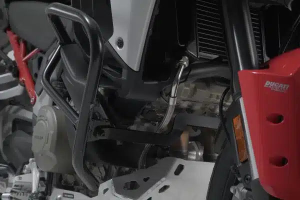 Les crashbars en tubes d’acier d’un diamètre de 22 mm avec finition époxy résistante à la corrosion et aux intempéries sont adaptés aux modèles Ducati Multistrada V 4 et sont disponibles en noir. Le traitement de surface est réalisé dans une installation ultramoderne située dans l’usine SW-MOTECH de Brno en République tchèque.