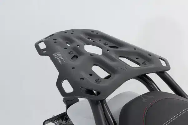 Notre ADVENTURE RACK pour les enduros de tourisme, les grandes routières et les sportives de tourisme séduit par son extrême résistance. L’épaisseur du matériau, le poids et la géométrie ont fait l’objet d’une optimisation approfondie pour répondre aux exigences d’une utilisation sur parcours difficiles mais aussi en off-road. Une généreuse surface de contact et les grands œillets d’arrimage facilitent le serrage des sacoches de selle. En raison de ses multiples alésages fonctionnels, le ADVENTURE-RACK peut recevoir les kits d’adaptation pour les topcases de SW-MOTECH, de Givi/Kappa, Krauser, Hepco & Becker et Shad, avec les sacoches SysBag à platine d’adaptation et le bidon RotopaX.
