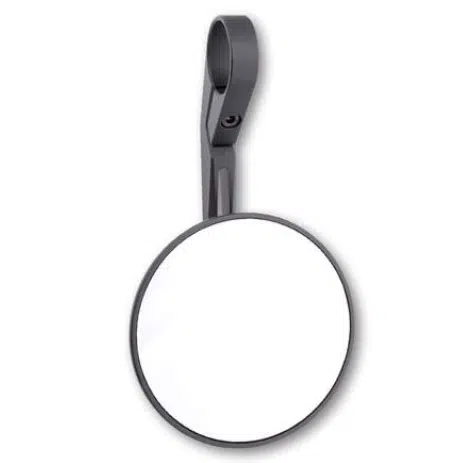 S’adapte aux guidons de 1 pouce (25,4 mm) et de 7/8 pouce (22,2 mm). Peut être monté avec les manchons réducteurs fournis directement sur le tube de direction ou sur les embouts de guidon disponibles en option avec le réceptacle du miroir d’extrémité du guidon. Le miroir peut être monté à droite et à gauche, ainsi que debout ou suspendu. La rotule précise permet un réglage confortable et très stable du miroir. Une articulation sur la pince donne à la version courte des possibilités de réglage supplémentaires pour une meilleure visibilité. La tête du miroir peut être orientée vers l’intérieur ou l’extérieur à l’aide d’une clé Allen.