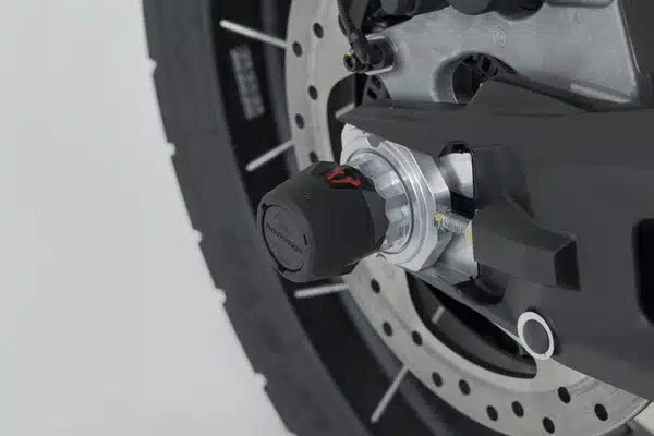 Produits en matière synthétique résistante à l’usure, les patins de protection de l’essieu arrière protègent le bras oscillant contre les dommages pouvant résulter d’une chute. Avec une part de fibre de verre de 30 %, le noyau du patin de protection est résistant en cas de choc. Sa surface lisse offre d’excellentes propriétés de glissement. Le logo au taureau rouge poli attirera à coup sûr l’attention sur ta moto.
