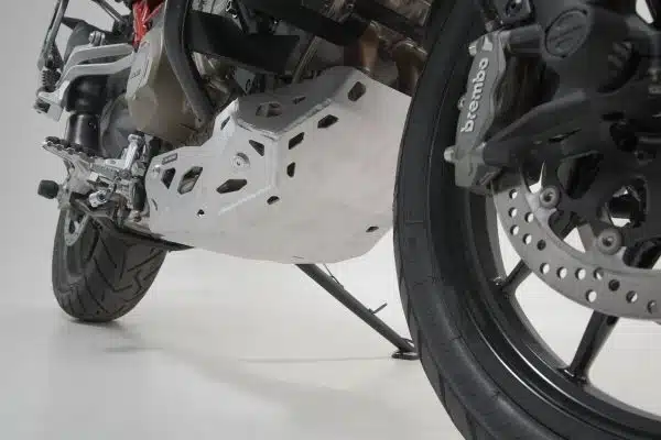 Ce sabot moteur en solide tôle d’aluminium de 4 mm d’épaisseur a été spécialement développé pour la Ducati Multistrada V 4. Il protège le filtre à huile et d’autres parties du moteur Crossplane.