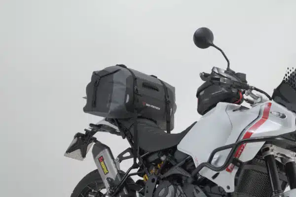 Disponibles en six tailles, nos Drybags enrichissent chaque randonnée à moto et offrent un élément de bagagerie polyvalent avec une technique de fixation simple. Grâce au matériau PVC élastique, les sacoches peuvent être facilement roulées et transportées compressibles sur la moto, quelle que soit la charge de bagages. Les Drybag sont complètement étanches et présentent une grande résistance aux UV. La nouvelle disposition des sangles permet de les combiner facilement avec d’autres modèles de Drybag sur la selle passager ou le porte-bagages. Grâce à leur conception simple, les nouveaux Drybags s’ajustent parfaitement aux sacoches SysBag WP étanches et aux sacoches de réservoir WP de la ligne PRO.
