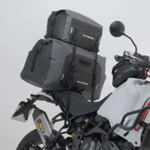 Disponibles en six tailles, nos Drybags enrichissent chaque randonnée à moto et offrent un élément de bagagerie polyvalent avec une technique de fixation simple. Grâce au matériau PVC élastique, les sacoches peuvent être facilement roulées et transportées compressibles sur la moto, quelle que soit la charge de bagages. Les Drybag sont complètement étanches et présentent une grande résistance aux UV. La nouvelle disposition des sangles permet de les combiner facilement avec d’autres modèles de Drybag sur la selle passager ou le porte-bagages. Grâce à leur conception simple, les nouveaux Drybags s’ajustent parfaitement aux sacoches SysBag WP étanches et aux sacoches de réservoir WP de la ligne PRO.