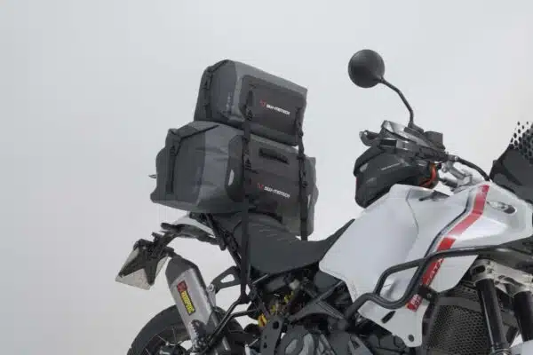 Disponibles en six tailles, nos Drybags enrichissent chaque randonnée à moto et offrent un élément de bagagerie polyvalent avec une technique de fixation simple. Grâce au matériau PVC élastique, les sacoches peuvent être facilement roulées et transportées compressibles sur la moto, quelle que soit la charge de bagages. Les Drybag sont complètement étanches et présentent une grande résistance aux UV. La nouvelle disposition des sangles permet de les combiner facilement avec d’autres modèles de Drybag sur la selle passager ou le porte-bagages. Grâce à leur conception simple, les nouveaux Drybags s’ajustent parfaitement aux sacoches SysBag WP étanches et aux sacoches de réservoir WP de la ligne PRO.