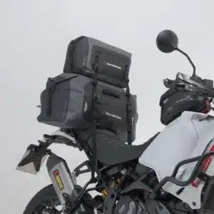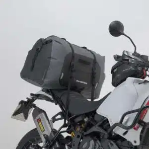 Disponibles en six tailles, nos Drybags enrichissent chaque randonnée à moto et offrent un élément de bagagerie polyvalent avec une technique de fixation simple. Grâce au matériau PVC élastique, les sacoches peuvent être facilement roulées et transportées compressibles sur la moto, quelle que soit la charge de bagages. Les Drybag sont complètement étanches et présentent une grande résistance aux UV. La nouvelle disposition des sangles permet de les combiner facilement avec d’autres modèles de Drybag sur la selle passager ou le porte-bagages. Grâce à leur conception simple, les nouveaux Drybags s’ajustent parfaitement aux sacoches SysBag WP étanches et aux sacoches de réservoir WP de la ligne PRO.