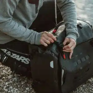 Fixation facile de la platine d’adaptation avec des sangles à l’arrière des sacoches SysBag WP