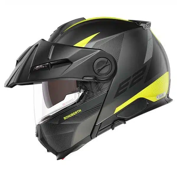 Le SCHUBERTH E2 est le mélange parfait entre le confort des casques modulaires de la célèbre série « C » et le look agressif d’un casque aventure. Le nouveau E2 intègre également les dernières normes SCHUBERTH en termes de sécurité, d’aérodynamisme et de performance aéroacoustiques.