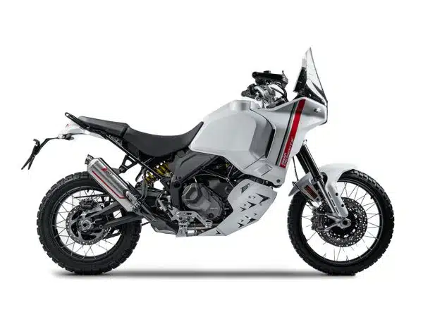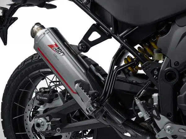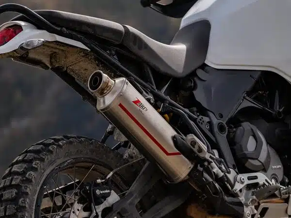 Design inspiré des courses de rallye, style minimaliste, matériaux de haute qualité et attitude tout-terrain. Lors du développement de l’échappement Sabbia pour la Ducati DesertX, les ingénieurs et designers de Zard Exhaust se sont penchés sur l’ADN typique de course de cette maxi-enduro, créant un kit adapté aux conditions de conduite les plus difficiles.