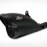 Silencieux Hypercone Remus inox avec embout carbone, incluant la protection thermique et le catalyseur nécessaire à l’homologation.