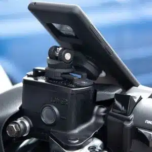 Utilisez le support de bocal de frein SP Connect pour fixer votre étui de téléphone SP Connect ou votre interface universelle à votre moto en quelques secondes.