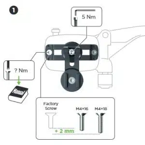 Accessoires : 2 vis M 4×16, 2 vis M 4×18