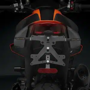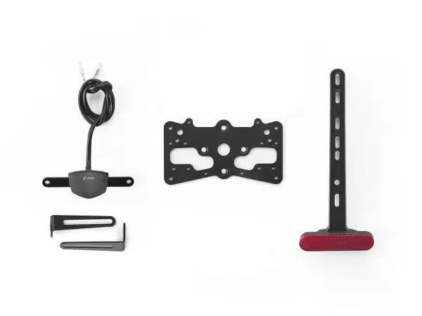 Réalisé en aluminium, chaque kit support d’immatriculation Fox est spécifiquement conçu pour le modèle de moto auquel il est destiné. Il s’intègre ainsi à la perfection à la ligne de la moto et rend en outre l’installation facile et rapide. En effet, chaque kit est fourni avec tout le matériel nécessaire pour un montage qui ne requiert aucune modification aux composants OEM. Une grande fonctionnalité et des dimensions extrêmement réduites, toujours en conformité avec les normes réglementaires. Les kits Fox comprennent l’éclairage de plaque d’immatriculation à LED SMD et les supports pour clignotants Rizoma. Ils sont réglables et fournis avec un arrêt de sécurité, pour garantir une inclinaison correcte.
