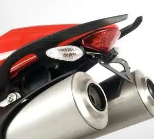 Support de plaque d’immatriculation R&G concût sur le même principe que celui d’origine mais en ayant réduit les proportions de la fixation de l’ensemble cadre/éclairage de plaque pour lui donner un esthétisme plus convaincant tout en limitant le budget du produit.