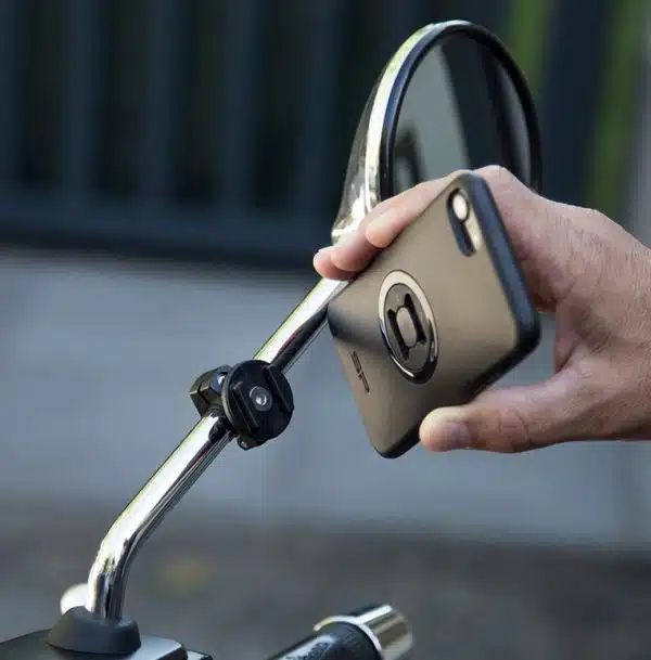 Avec le SP Connect fixation pour les rétroviseurs, vous pouvez fixer votre téléphone à votre rétroviseur en quelques secondes. Montez la fixation rétroviseur sur un rétroviseur de moto ou scooter et vous pourrez en quelques secondes placer votre SP Connect étui de téléphone sur le support et le verrouiller par une rotation à 90° dans le sens des aiguilles d´une montre. Votre téléphone portable est positionné en toute sécurité dans votre champ de vision, vous permettant de naviguer, ou accéder à vos playlists.