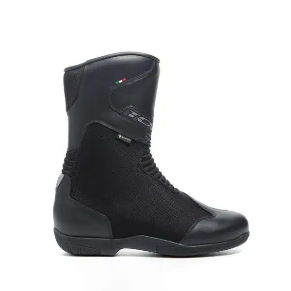 Bottes de touring pour femme en cuir et CORDURA®, dotées d’une membrane imperméable et respirante en Gore-Tex®. Un modèle conçu pour garantir un maximum de protection, de stabilité et de confort.