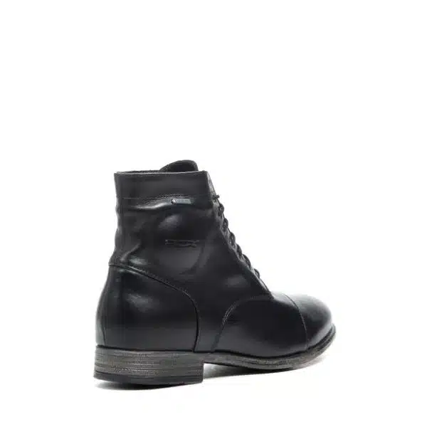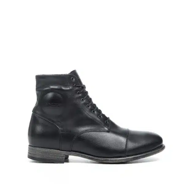 Bottines de moto en cuir dotées d’une membrane imperméable et respirante en Gore-Tex®. Un modèle offrant protection à moto et confort de marche, pour un usage quotidien.