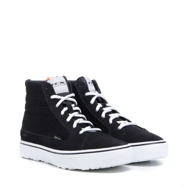 es Street 3 Lady Tex Waterproof sont des chaussures de moto pour femme certifiées et imperméables grâce à la membrane imperméable en T-DRY, ce qui les rend adaptées à toutes les conditions. Dotées de renforts aux malléoles avec inserts D30® et de protections au bout et au talon, les Street 3 Lady Tex Waterproof sont conçues dans le respect du Woman Fitting Concept, le protocole spécial TCX mis au point pour combiner un chaussant parfait pour le pied féminin et une sécurité maximale, protégeant les zones sensibles du pied. Fabriqué en polymère moulé, l’insert spécial en Zplate® garantit la protection, tout en alliant rigidité transversale, pour un maximum de sécurité, et flexibilité longitudinale grâce à sa forme en Z. Le Zplate® permet aux chaussures de suivre tous les mouvements naturels du pied pendant la conduite mais aussi la marche, évitant ainsi l’écrasement des chaussures en cas d’impact. Réalisée en tissu à trame renforcée et dotée d’inserts en cuir velours, la tige présente une fermeture à lacets. La semelle de propreté en OrthoLite®, avec son amorti durable et hautement respirant, confère aux chaussures un confort élevé. Fabriquée en Groundtrax® résistant à l’usure, la semelle extérieure crantée garantit une adhérence maximale et une stabilité extrême, même sur sol mouillé.