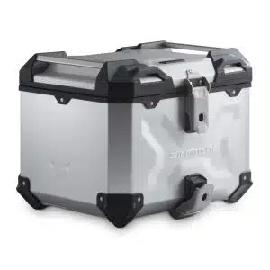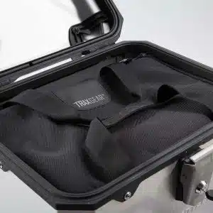 Le topcase TRAX ADV est la solution de bagages haut de gamme pour l’arrière de ta moto. Elle convient parfaitement sur route et en tout-terrain. Nos valises en aluminium robuste présentent les mêmes caractéristiques de qualité que celles des valises latérales de la collection et se combinent idéalement entre elles. Le Topcase verrouillable offre une capacité de rangement de 38 l. De quoi accueillir un casque de moto sans problème. Solidité, étanchéité, manipulation aisée, caractéristiques astucieuses et accessoires pratiques : que des avantages qui font des valises en alu TRAX ADV d’une épaisseur de 1,5 mm, les compagnes idéales pratiques à emmener pour des trajets longs ou courts.