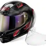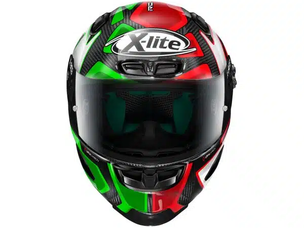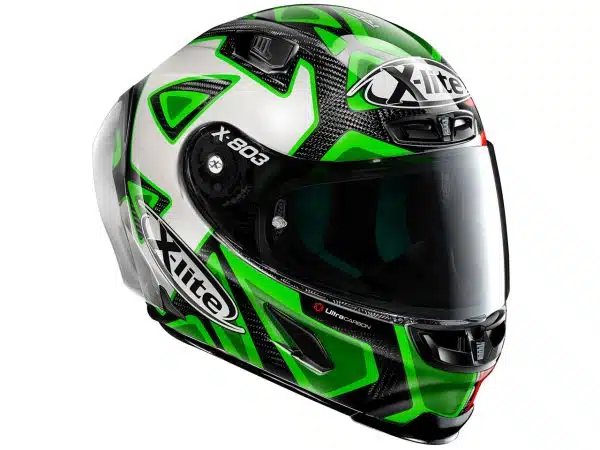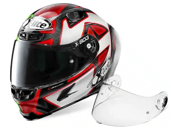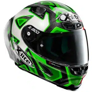 Avec le X-803 Ultra Carbon, X-lite montre ce qui est possible avec des casques de course haut de gamme. Avec le X-803 Ultra Carbon, X-Lite apporte la technologie Moto GP sur la route. L’aérodynamisme et la ventilation ainsi que le champ de vision étendu caractérisent le casque avec un confort de port clair. De plus, le X-803 Ultra Carbon propose le nouveau Nolan Emergency Release System (NERS) pour plus de sécurité, qui permet de retirer rapidement les coussinets de joues en cas de chute. Ce casque est fait de fibres de carbone de haute technologie pour le meilleur confort de conduite et une sensation agréable et fraîche dans le casque à tout moment. Ce casque en «fibres composite» affiche sur la balance une valeur record proche de 1250 g. Le cache-nez, qui s’inspire clairement des masques pour la pluie utilisés dans le domaine des courses, limite la formation de buée. Le X-803 ULTRA CARBON a passé avec succès, auprès du laboratoire Newton S.r.l., les tests relatifs aux impacts de rotation auxquels sont soumis les casques de course utilisés dans les courses SBK et MotoGP. Newton S.r.l. est un laboratoire de tests indépendant, reconnu par le Ministère Italien des Transports pour l’homologation des casques et des écrans, conformément à la norme ECE / UN 22-05.